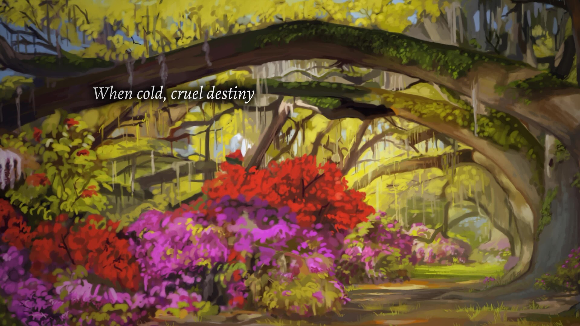 In the depths of a dark and unforgiving forest, an exiled princess whiles her time in solitude. For a girl raised in the lap of comfort, the woods are impossibly harsh, and day-to-day survival is the most she can manage. One day, however, a mysterious, beautiful maiden appears, throwing her world out of its already delicate alignment. The princess is instantly captivated by this stranger and begins to fancy herself the heroine of a fairytale, even as the maiden proves herself to be less and less of a fantasy.