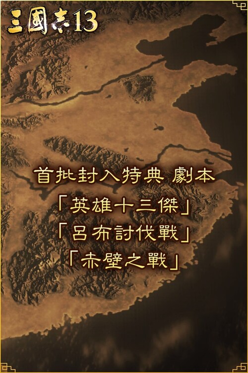 作為首批特典,追加「英雄十三傑」「呂布討伐戰」「赤壁之戰」3種劇本。