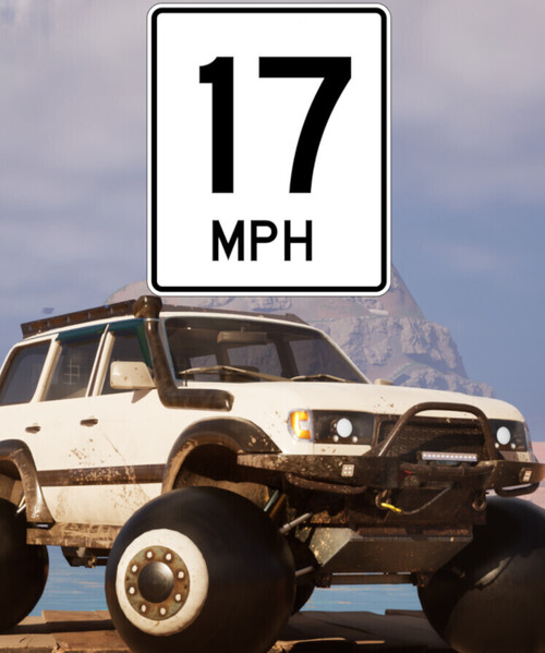 17mph is the speed you need to maintain while maneuvering your off-road machine (with balls for wheels) through tricky terrain and over unconventional bridge-like contraptions. Also the car can jump.