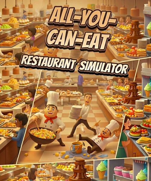 In All-You-Can-Eat Restaurant Simulator , up to four players work together to run a hectic all-you-can-eat restaurant. Cook dishes, serve hungry guests, and keep the operation running while chaos constantly unfolds.