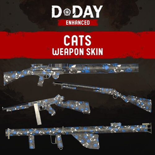 The CATS WEAPON SKIN is a cat themed skin for D-Day Enhanced weapons. (Game sold separately).