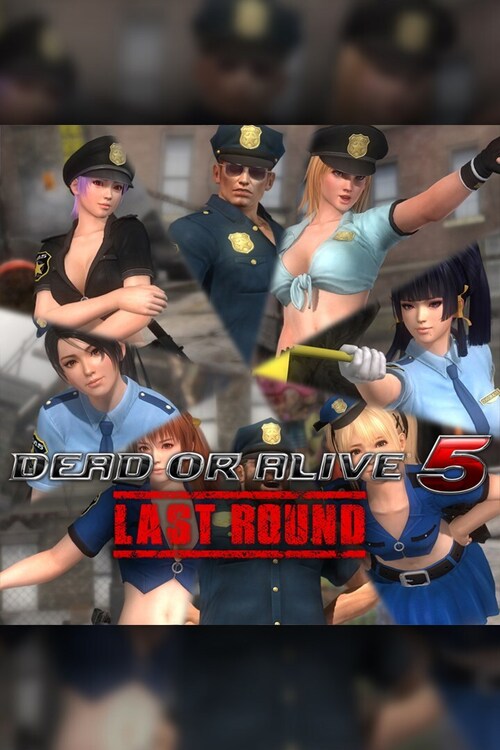 This set includes Police Uniform costumes for Kasumi, Ayane, Hitomi, Leifang, Kokoro, Tina, Mila, Momiji, Marie Rose, Nyotengu, Bass, and Rig.