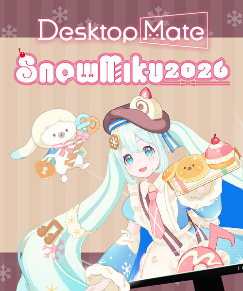 Snow Miku appears each year with a brand-new design. The 2026 theme is "Shiawase Pâtisserie" (Happy Pastry Shop). Adorned with musical notes, snowflakes, and sweets, she sweetly decorates your desktop. This DLC features all-new motions throughout, with every gesture and movement exclusive to this version—completely different from the standard Hatsune Miku.