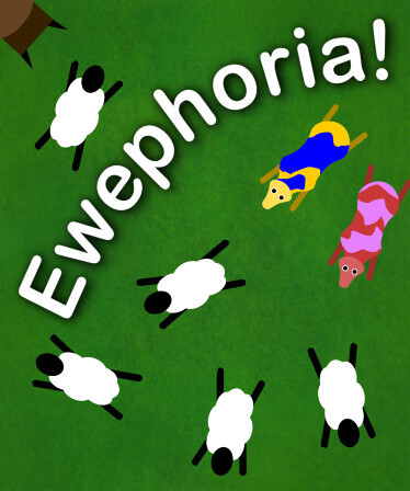 Ewephoria is an arcade style game where you're a group of sheepdogs trying to herd sheep to safety. Designed to work best with a group of friends crowded around the screen you each use the interactive controllers on your phones to move your sheepdogs around the map, chasing the sheep and saving the day! On your sheepherding travels, you'll encounter various other animals, from angry cows which trample sheepdogs underfoot to hungry wolves which are on the hunt for some nice tasty sheep.