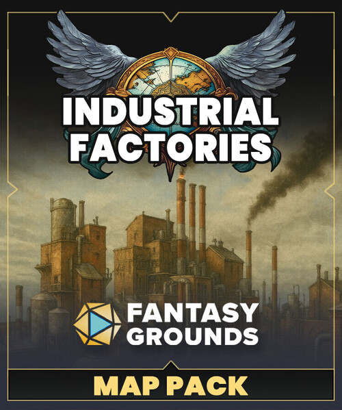 The FG Industrial Factories Map Pack features images and art produced by our in-house artist, Joshua Watmough. They have been organized and optimized for use with Fantasy Grounds Unity and the image tools. This art package allows the creation of classic brick factory exteriors and surrounding industrial environments.