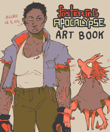 Receive an Art Book PDF for Fostering Apocalypse that includes 17 pages concept art, sketches, process documentation, and in-game assets, as well as 5 4K wall papers and phone backgrounds.