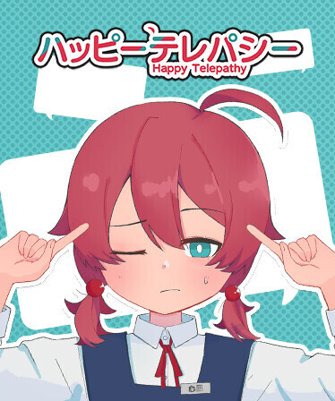 Happy Telepathy is an adventure game in which protagonist Miru Kokonagi, a girl who possesses the ability to understand others' thoughts, uses her gift to help solve her friends' problems. Use hints gained through telepathic powers to decide Miru's next move! Jam-packed with merry moments, heartfelt happenings, fuzzy feelings, and all things cute!