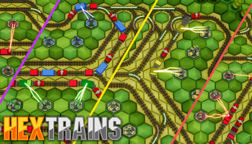 HexTrains mixes the classic tower defense with the puzzle genre. You need to destroy colored cargo containers that are transported by trains while building turrets that match the respective colors. Additionally you can manipulate switches to control the movement direction of the trains, which lets you guide the freight to the matching turrets. To make it easier to deal with the oncoming flood of trains you can also upgrade your turrets.
