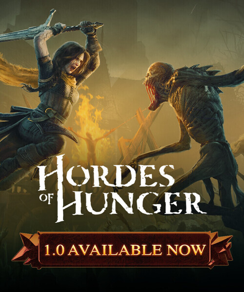 Hordes of Hunger is a roguelite arena-slasher where you'll fight for survival against ever-intensifying waves of monsters. Create your loadout from a range of weapons and special attacks, then gain new abilities in each run to fine-tune your build. Complete quests and rescue others from the onslaught to gain resources and uncover the mysterious origins of the evil you face.