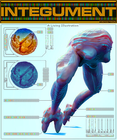 This is an interactive sci-fi illustration of a microscope interface. In this "living illustration," you'll find patterns and shapes that reveal information about the unique lifeforms that live on the surface of your skin, also known as, integument.