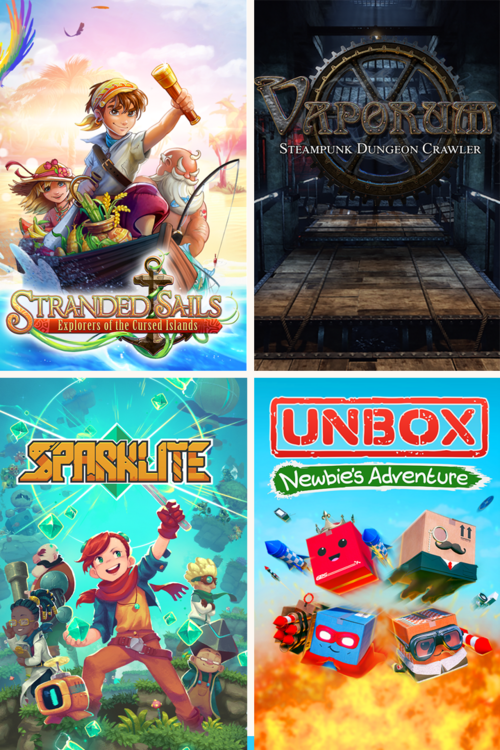 Vaporum developed by Fatbot Games ©2019. Sparklite developed by Red Blue Red Blue Games ©2019. Stranded Sails developed by Lemonbomb Entertainment ©2019. Unbox Newbie's Adventure developed by Prospect Games ©2019. All titles published by Merge Games ©2020.