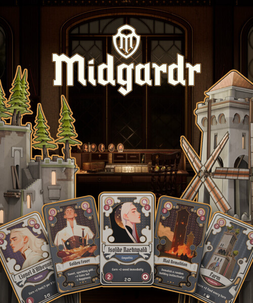 ✦ Midgardr is a solo, turn-based city-builder and card game. You play on a board game