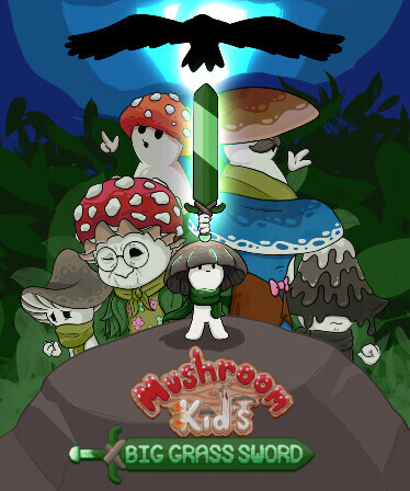 Mushroom Kid's Big Grass Sword is a narrative, physics-based, precision platformer that follows Mica , a little mushroom, on a journey to rescue their village after the residents are captured by a gigantic bird. Meet Grandmashroom as she leads Mica to a mysterious temple to claim the Blade of Grass: a powerful weapon with the ability to pull Mica up ledges and over dangerous obstacles.
