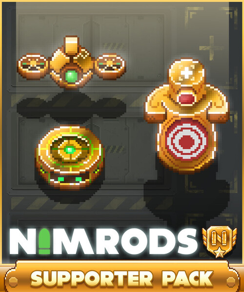 The NIMRODS Supporter Pack is a way for players who love the game to show extra support for our small Indie team. This pack does not add new gameplay features or power. Instead, it grants you a set of exclusive cosmetic touches with a golden flair.