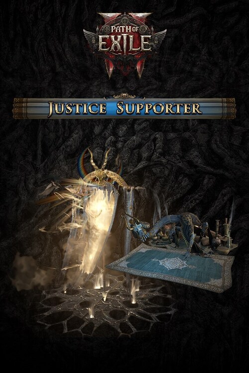 The Justice Supporter Pack contains a Portal Effect, a Hideout Decoration, a Social Frame, a Forum Title, a Badge, and 300 points.