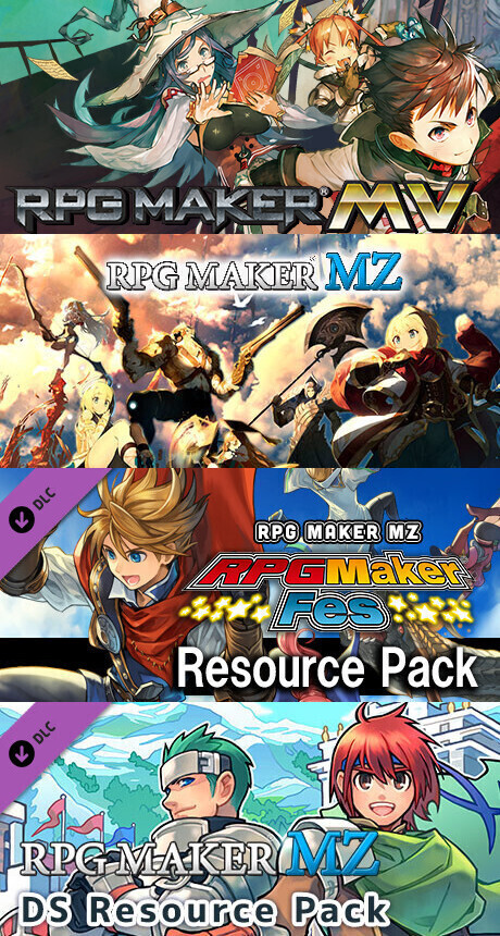 Included with RPG Maker MZ, we have prepared a wealth of resources consisting of the visual art and music that are needed to make games. All you need to focus on is giving shape to your own ideas. On top of that, for anyone looking for something beyond the materials that are already provided, we have a vast collection of additional downloadable content intended for the RPG Maker series.