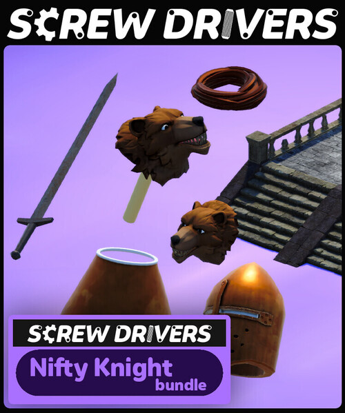 Embracing the origins of Screw Drivers, being a high tech building and racing game set in the middle of medieval castles, racing against various monarchs spread across distinct islands, we present the Nifty Knight Bundle. If youʼre ready to challenge monarchs and other players not only with advanced racing cars, but also in shiny armor with your sword awaiting deployment, you may prepare yourself with everything this bundle has to offer.