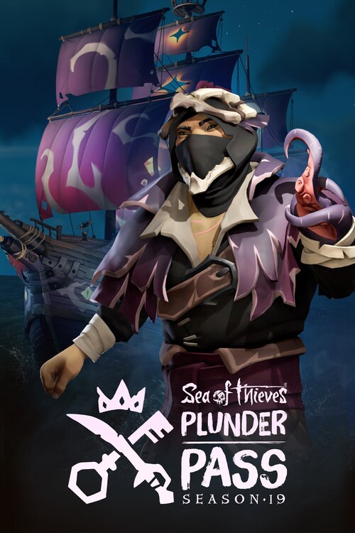 Purchase a Sea of Thieves Plunder Pass and unlock the ability to earn extra Seasonal rewards as you rack up Renown on your adventures! Season 19's Plunder Pass contains the Kraken's Ruin ship set including Collector's Figurehead and Sails, the Kraken's Ruin Hook, Jacket and Mask for your pirate, and 750 Ancient Coins earnable in stages (in addition to the 250 earnable through Seasonal progression without Plunder Pass ownership). All cosmetics included are new to the seas, not even the Emporium has them in stock yet!