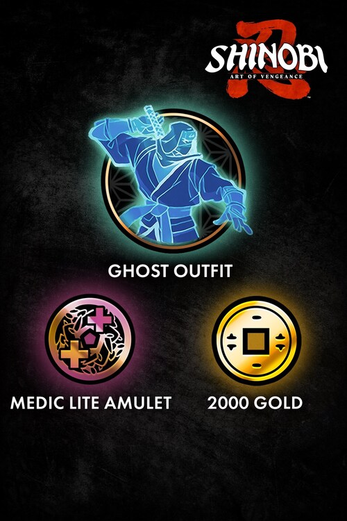 The SHINOBI: Art of Vengeance Starter Pack includes: o Ghost Outfit o Medic Lite Amulet o 2000 Gold *Gold is collected during gameplay and cannot be purchased separately.