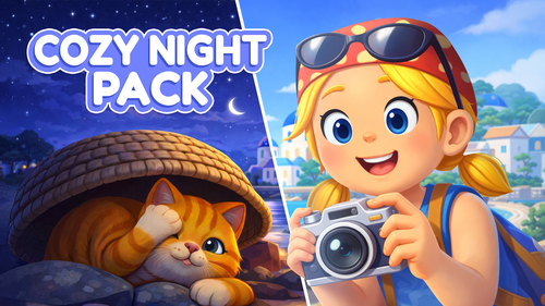 Wander across bright, bubbly islands that feel like an endless summer vacation—but keep your eyes peeled! These fuzzy superstars love to hide, lounge, stretch, and strike suspiciously perfect poses. Aside from taking pictures, you can fill their cute little water bowls to keep them happy, and, most importantly, don't forget to pet them!
