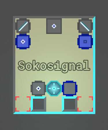 Sokosignal is a puzzle game in which you send a signal with each move you make. Some objects will receive your signal and attempt to copy your move, others will not. Some will resend your signal, others will both resend and attempt to copy. Place the right objects on the marked spots to solve each puzzle.