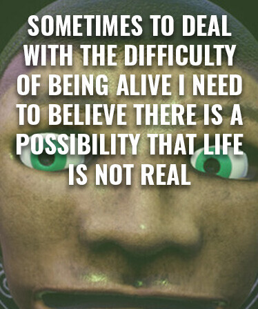 Sometimes to Deal with the Difficulty of Being Alive, I Need to Believe There Is a Possibility That Life Is Not Real.
