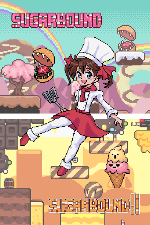 This bundle contains all versions of both Sugarbound and Sugarbound 2. Game 1: Sugarbound The human kingdom is facing a severe food shortage, and the only way to survive is by defeating monsters from a mythical land known as Sugarbound. However, only a master pâtissière can transform these defeated monsters into edible food! Chloé Fondant is humanity’s only hope for survival — and for enjoying delicious cakes. Sugarbound is a 2D adventure platformer with a charming retro art style, where you explore a land made entirely of pastries, sweets, and all kinds of food. Jump on enemies’ heads to turn their ingredients into edible treats, collect as much food as possible, and save the human world. Bounce on donuts, climb cakes, and reach the end of each stage as you journey toward the final goal. Game 2: Sugarbound 2 The human kingdom’s food shortage crisis was resolved thanks to the efforts of the master pâtissière Chloé Fondant, but the food was so delicious that a new crisis has emerged! With all food reserves empty once again, Chloé must return to Sugarbound to search for delicious — and this time, healthier — ingredients and foods. Sugarbound 2 is the sequel to Sugarbound, a charming retro pixel art 2D platformer where players defeat food monsters and gather ingredients to bring back to the kingdom. In the first game, enemies were defeated by jumping on them, but now Chloé Fondant comes prepared with an arsenal of cooking utensils as weapons, each offering its own unique strategy for victory.