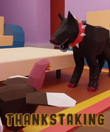 ThanksTaking is a game where you play as an angry turkey, looking for revenge on thanksgiving night.... You have been taken home to be cooked for thanksgiving, and you have to make sure not to let that happen by killing anyone in your way! You need to explore the house and find keys to open the front door and escape before you get cooked.