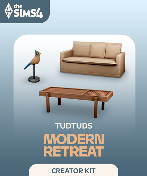 Bring a modern vision of nature’s spirit into your Sims' living room with The Sims™ 4 Modern Retreat†. Blending handcrafted items, cozy seating, and sleek furniture in a variety of natural materials, this kit celebrates the touch that transforms nature’s raw beauty into timeless modern pieces, where simplicity meets sophistication in every detail. Created by TudTuds.